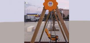 Dalla raccolta fondi donata e collocata nella nuova piazza di Condera, una giostra per bambini con disabilità.