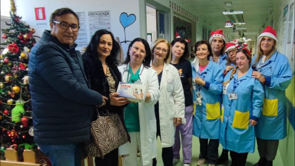 L’occasione è stata propizia per accogliere in reparto il noto Editore Graziano Tomarchio, con la consorte Dominga Pizzi, il quale nel segno della costante vicinanza all’ospedale e ai piccoli degenti, ha donato alla Pediatria un utilissimo apparecchio Saturimetro con sonda pediatrica. Tutti noi ringraziamo per questo l’editore, da sempre sensibile alle tematiche riguardanti i bambini e gli adolescenti, ormai vero e proprio amico del nostro reparto.