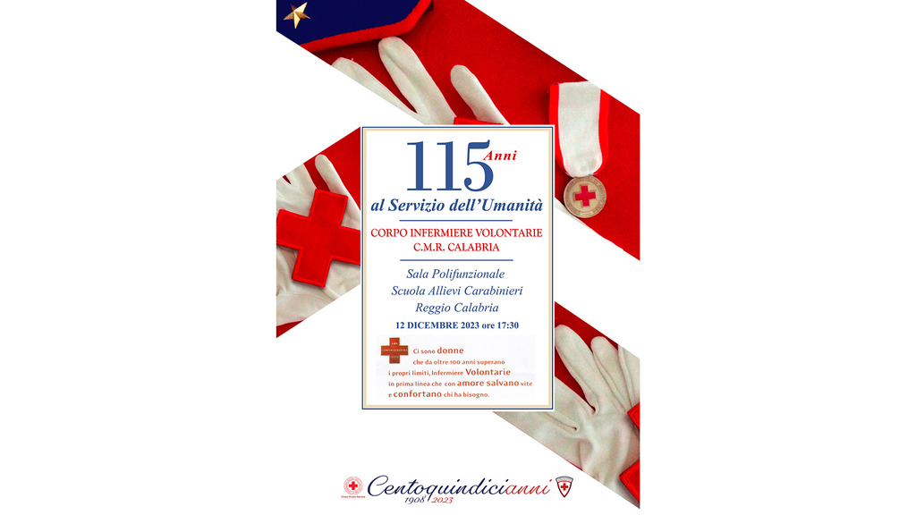 Il Corpo delle Infermiere Volontarie della Croce Rossa Italiana è presente su tutto il Territorio Nazionale e svolge attività sia in ambito civile che militare. Quotidianamente le Infermiere Volontarie prestano servizio ordinario presso le Unità della Croce Rossa Italiana e in collaborazione con le Forze Armate, e servizio straordinario in attività di emergenza, civile e militare. Nel 2023 ricorrono i 115 Anni dalla fondazione del Corpo delle Infermiere Volontarie della Croce Rossa Italiana. La storia delle Infermiere Volontarie ha inizio a Milano nel 1906 con l’organizzazione del primo corso di formazione. Il 28 dicembre 1908 un tremendo terremoto colpiva la zona dello Stretto di Messina devastando le città di Reggio Calabria e Messina. La tremenda scossa dell’11° grado della scala Mercalli, 7,2 nella scala Richter, fu uno degli eventi sismici più forti del XX Secolo. In soli 37 secondi alle 5,20 del mattino di quel tragico giorno due città venivano quasi completamente distrutte. Tra il personale mobilitato per prestare soccorso alla popolazione vi erano circa 260 Infermiere del Corpo delle Infermiere Volontarie della Croce Rossa Italiana da poco diplomate nei primi corsi di formazione per Infermiere della Croce Rossa. Le Sorelle del C.M.R. Calabria vogliono allora celebrare nella città di Reggio Calabria i 115 anni della Fondazione del Corpo con un evento a carattere regionale in programma per martedì 12 dicembre 2023 alle ore 17:30, presso la “Sala Polifunzionale” della Scuola Allievi Carabinieri di Reggio Calabria, alla presenza dell’Ispettrice Nazionale del Corpo delle Infermiere Volontarie, Sorella Emilia Bruna Scarcella, delle massime autorità civili, militari e religiose.