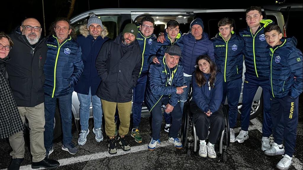 Infatti, i gialloblù di Mister Fiorenza, squadra partecipante al campionato di A2 Elite, di ritorno dalla trasferta di Giovinazzo in Puglia non potevano assolutamente esimersi dall’aiutare la giovane. Da Tarsia a Lazzaro, per poi dormire a casa di una sostenitrice gialloblù. Così, la Futura per puro caso è finita in Tv, come Domiziana catapultata sul pullman della Futura insieme a larga parte di dirigenza e staff.