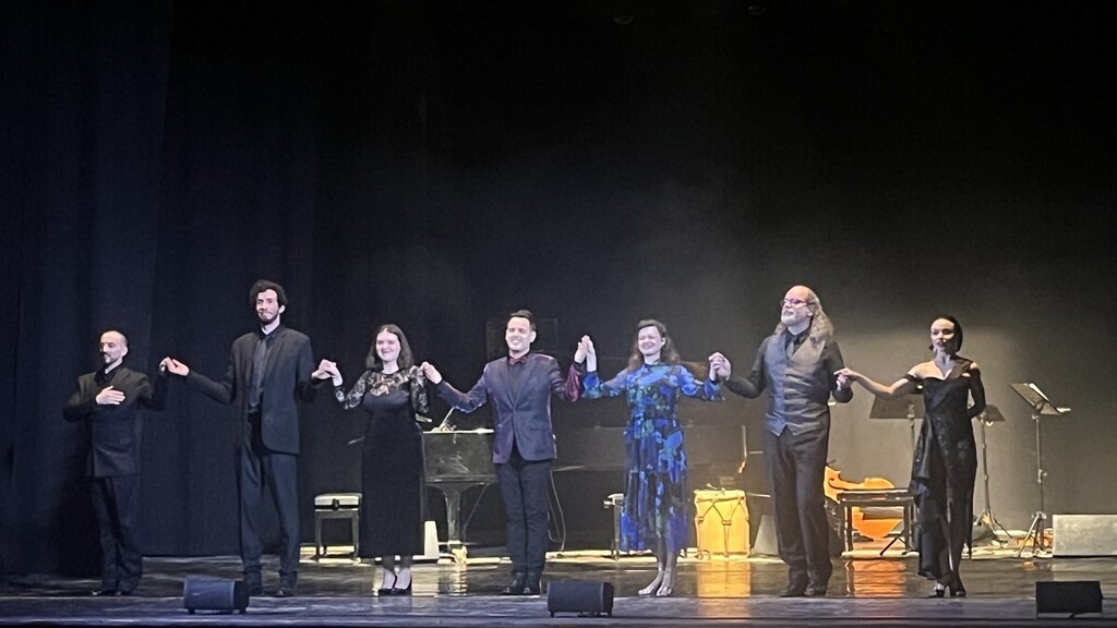 Un gradito ritorno a Palmi, suggellato da una standing ovation finale, quello della Tango Spleen Orquesta fondata nel 2008 in Italia dal musicista argentino Mariano Speranza (pianoforte voce e direzione), ormai in Italia da 20 anni. L'ensemble, tra i più richiesti nel panorama internazionale, si nutre anche del talento di Francesco Bruno (bandoneon), Inesa Baltatescu (violino), Elena Luppi (viola), Mauricio Petta Valencia (contrabbasso). A impreziosire il concerto i quadri magistralmente animati dai ballerini Sophie Sperling e Francis Aguilar. Musiche attinte dal migliore repertorio di tradizione popolare e folklore argentini, un intenso omaggio al grande Astor Piazzolla e poi spazio alle composizioni originali di Mariano Speranza che con il pubblico ha condiviso la sua emozione di trovarsi ancora una volta a Palmi, paese originario dei suoi bisnonni emigrati in Argentina un secolo fa, nel 1926, quando la sua nonna, Marianna, aveva solo due anni.