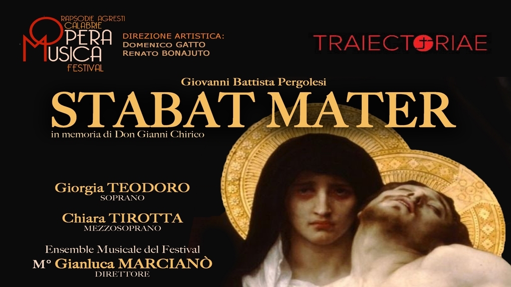 Mercoledì 7 dicembre alle ore 19,00 alla Chiesa di San Giorgio il corso Lucianum di Reggio Calabria il Festival Rapsodie Agresti – Calabriae OperaMusica promosso da di Traiectoriae con il sostegno del Ministero della Cultura presenta lo STABAT MATER di Giovanni Battista Pergolesi con la prestigiosa direzione d’orchestra di Gianluca Marcianò e le voci di Giorgia Teodoro e Chiara Tirotta