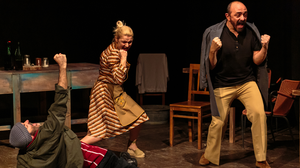 I tre personaggi si incontrano in una locanda, tre solitudini che si mischiano alla pena. I personaggi sembrano fantasmi e si muovono come le foglie degli alberi di notte. Magdalena (Stefania De Cola) e Lucio (Lorenzo Praticò), come pietre incastrate nella locanda che gli appartiene, e con loro il Becchino (Mariano Nieddu), incarnano questo triangolo che assume di volta in volta forme diverse, con distanze che si avvicinano e si allontanano, ma con vertici che non potranno mai toccarsi
