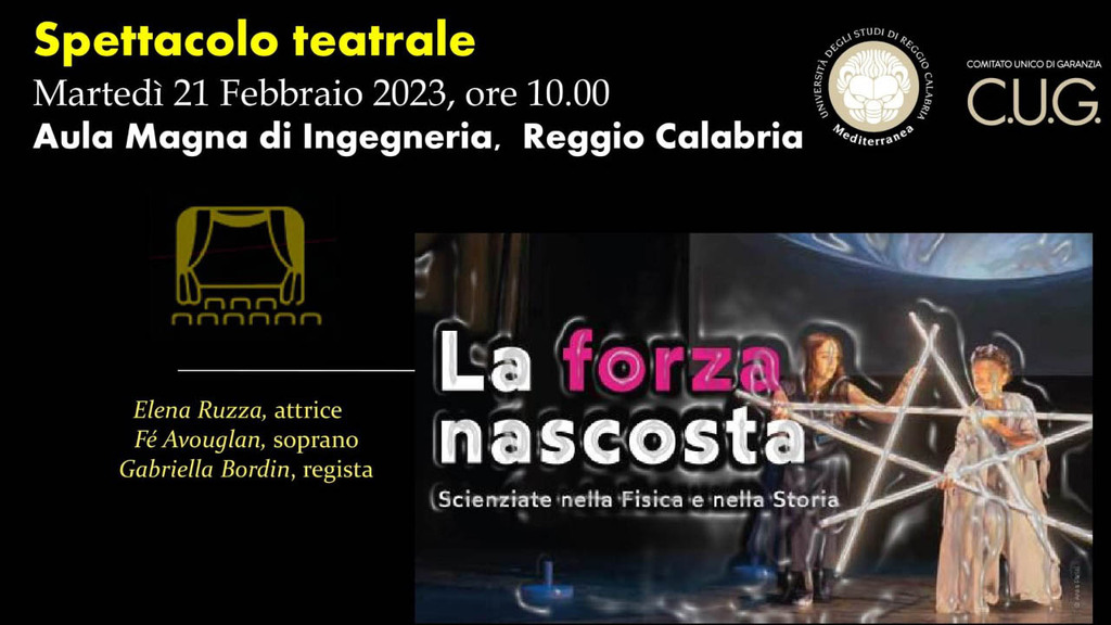 In occasione di questa ricorrenza, martedì 21 Febbraio alle ore 10.00 presso l’Aula Magna di Ingegneria  dell’Università Mediterranea di Reggio Calabria si terrà lo spettacolo teatrale "La Forza Nascosta. Scienziate nella Fisica e nella Storia". È la prima volta che va in scena nel Sud Italia!