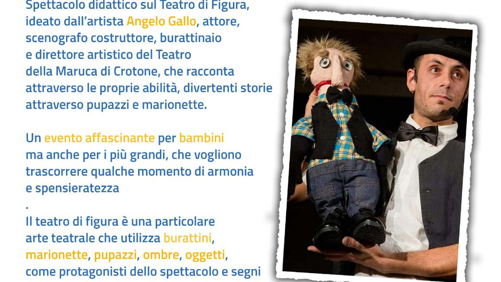 spettacolo teatrale di Marionette “Puppet Show”, di e Con Angelo Gallo. Organizzato