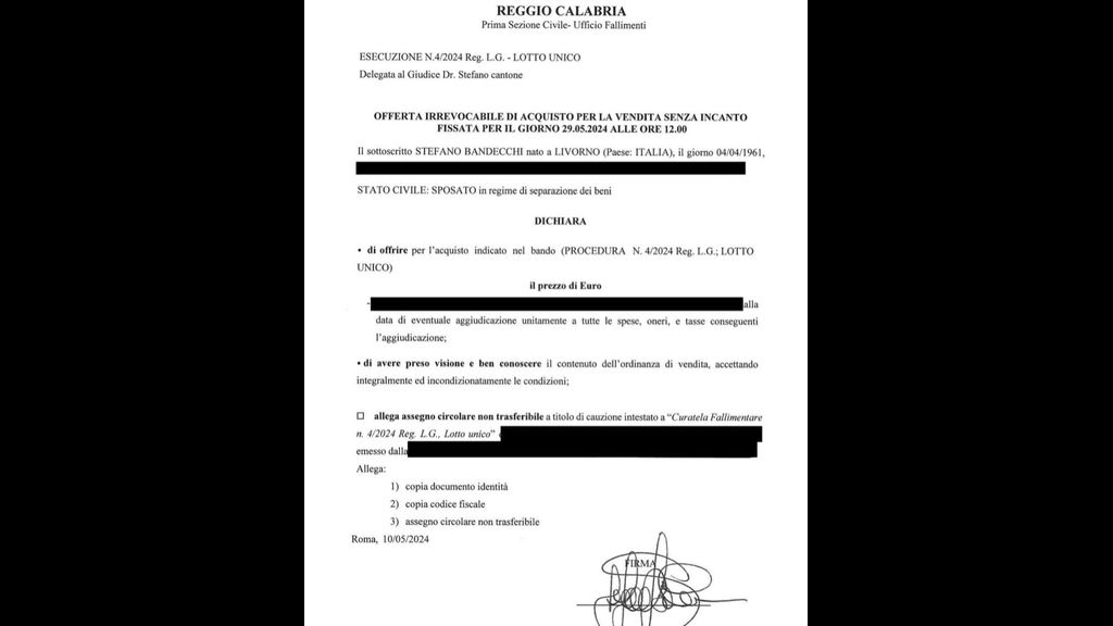 Ho formulato l'offerta per il marchio della Reggina Calcio. Lo compro a nome di Stefano Bandecchi e lo regalo al Comune di Reggio Calabria che poi vedrá di donarlo a chi ha oggi la squadra.