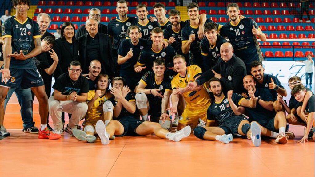 Questi i parziali della gara che hanno portato alla vittoria capitan Carmelo Gitto e compagni: 25/23 27/29 21/25 25/21 15/8.