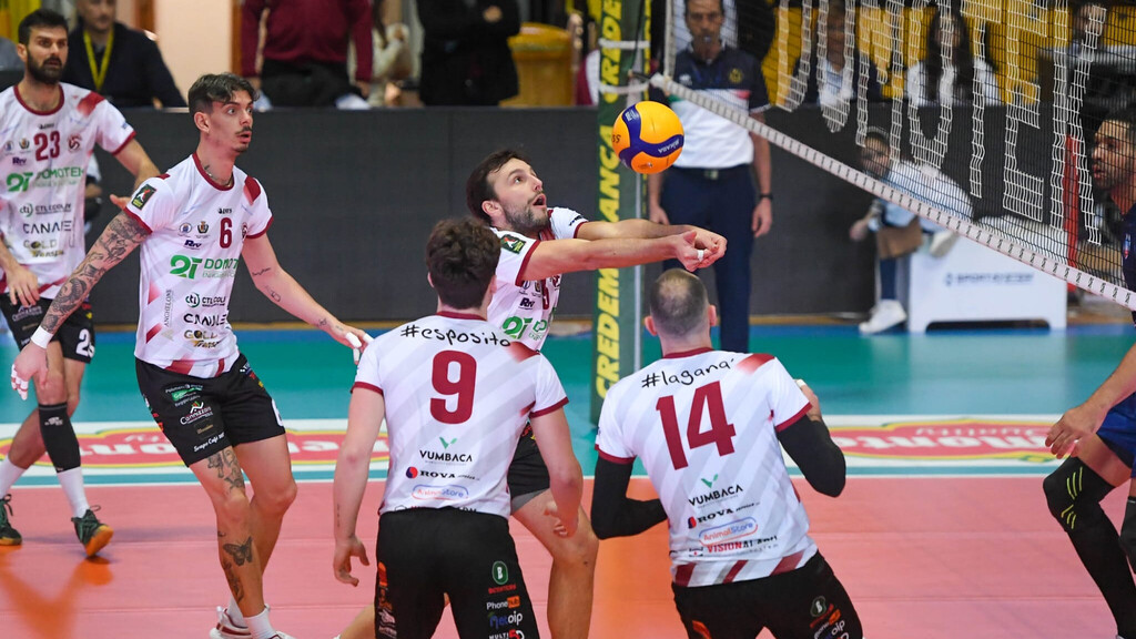 Gioia impatta dopo un errore al servizio degli ospiti e si va ai vantaggi. Attolico emula gli avversari al servizio per il secondo set point reggino.