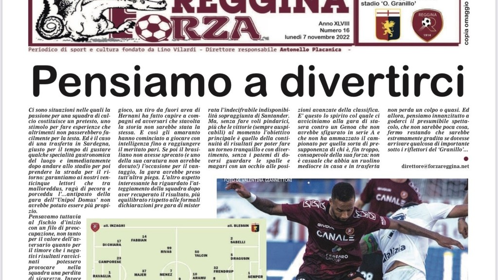 Amaranto in campo lunedì contro il Genoa. Leggi la nuova edizione di Forza Reggina per scoprire tutte le ultime news.