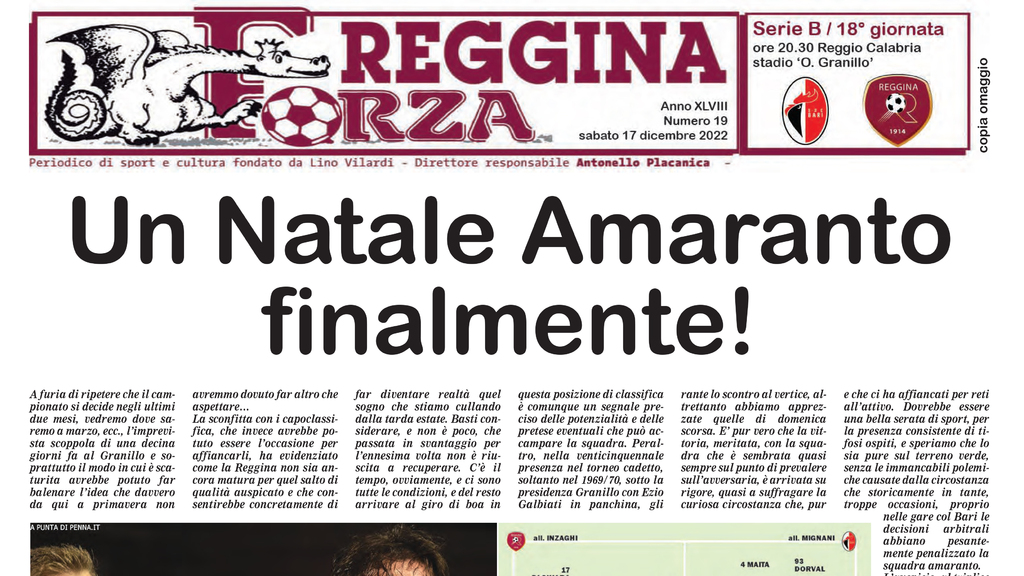Scarica la nuova edizione con tutte le curiosità sulla sfida Reggina-Bari in programma alle 20:30 di sabato 17 dicembre allo stadio Granillo.