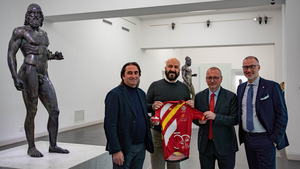 nell'anniversario del ritrovamento dei Bronzi. Il dono, simbolico, della maglia