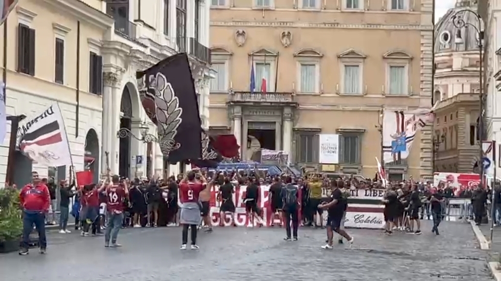 È il giorno decisivo per il futuro della Reggina. Sono già migliaia i tifosi amaranto presenti a Roma dove nella giornata odierna si terrà il Consiglio di Stato. Striscioni, bandiere. L'urlo, unico "Noi siamo Reggio Calabria" che si alza forte nel cielo. Poche parole, tanta apprensione e grande sentimento. I tifosi Amaranto sono stati collocati in Piazza Santi Apostoli, distante dalla sede con Cds.