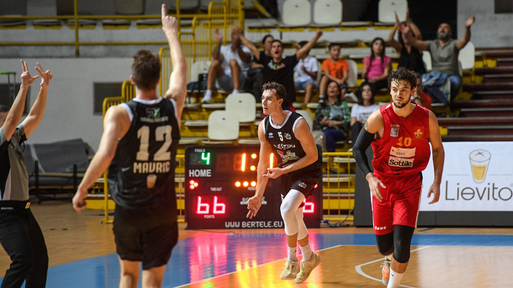 La gara ha tanti volti. Aguzzoli è il più vispo dei locali. Binelli commette troppo presto il quarto fallo personale. 42 a 47 all’intervallo lungo.