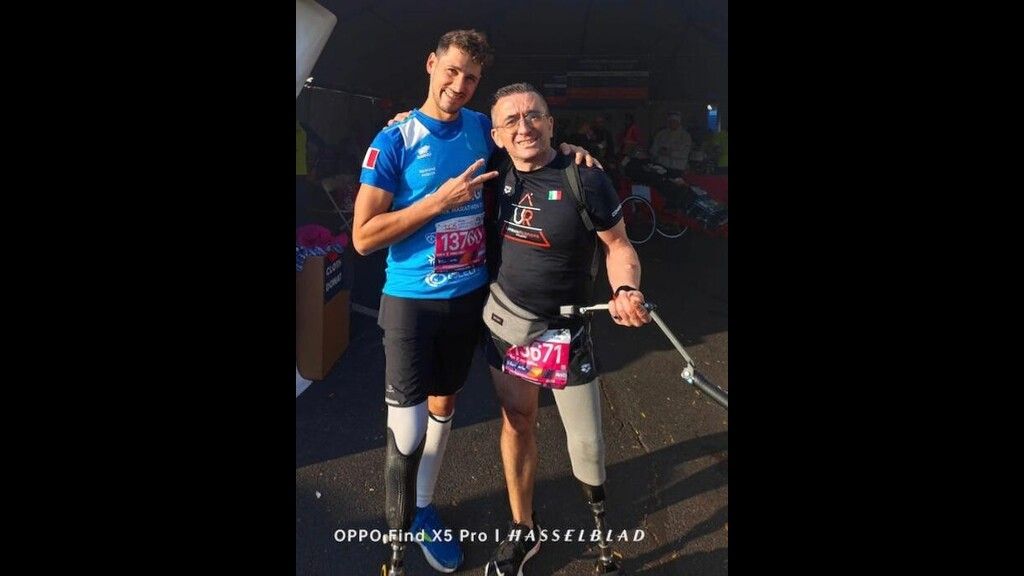 “Ho conosciuto Giusy inizialmente a Lecce nel 2017, ma poi l’ho rivista nel 2021 ad un campus sul paratriathlon organizzato da Obiettivo 3, l’associazione creata da Alex Zanardi. Quell’incontro è stato per me davvero significativo, perché ho iniziato a raccontarle del mio sogno di fare triathlon e di correre le lunghe distanze. E così Giusy, attraverso la sua associazione, mi ha donato un piede adatto a queste esigenze, con cui corro ancora oggi. Ricordo che in quello stesso anno, 2021, ho subito partecipato alla mia prima 42K, la Maratona di Berlino, gara che si rivelò difficile sia per il caldo che per i dolori alla gamba accusati dopo il trentesimo chilometro, ma che comunque riuscii a concludere in 4h40’. Alla maratona di New York sono arrivato più preparato sia mentalmente che fisicamente, dato che a settembre ho partecipato al mezzo Ironman di Cervia e a fine agosto ho vinto la medaglia d’oro ai Campionati Europei di paratriathloin in Belgio. Correre a New York è stata un’esperienza bellissima e mi ha sorpreso vedere così tanti atleti paralimpici al via in handbike e carrozzine olimpiche. Noi amputati eravamo in 5 e credo di essere arrivato secondo. Ho adottato la tecnica di fermarmi ogni 40 minuti per togliere la cuffia e asciugare il moncone dal sudore e cosi sono arrivato in fondo, quasi col sorriso, in 4h15’. Sono davvero felicissimo del risultato perché non mi aspettavo un tempo del genere".