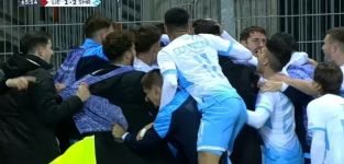 Il giovane classe 2007 festeggiato da compagni e mister a fine partita
